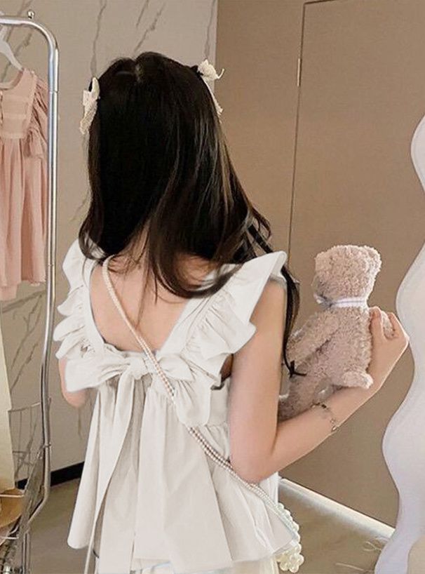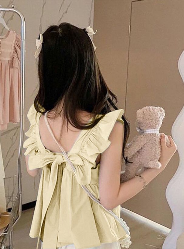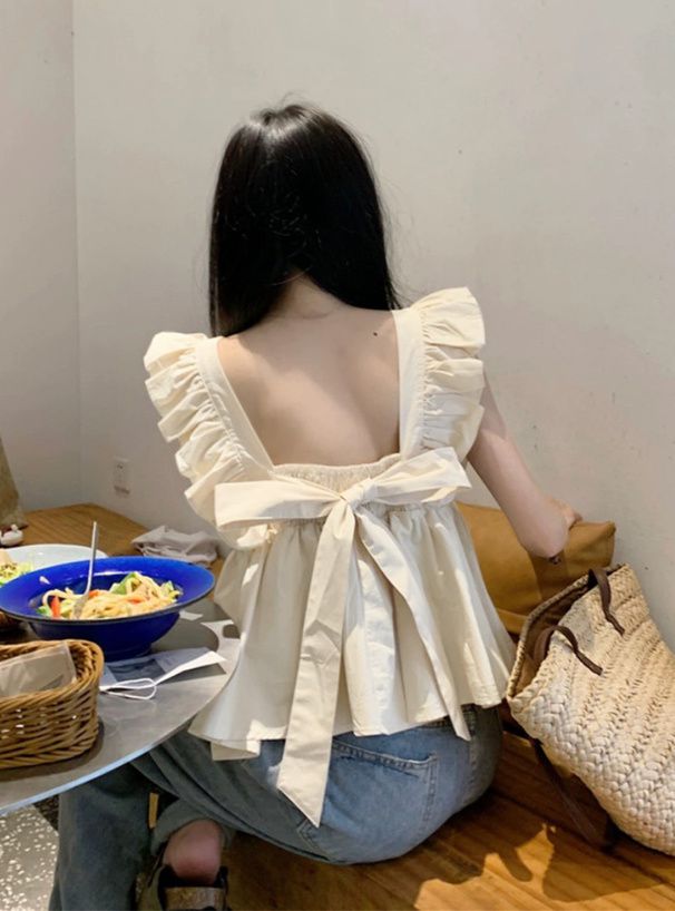 甜美荷葉背後綁帶傘狀背心