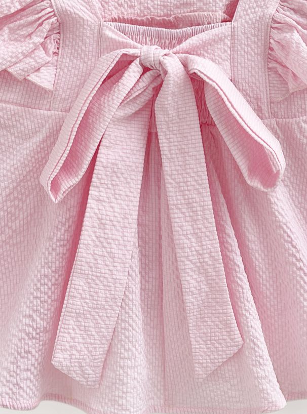 日本 GRL - 甜美荷葉背後綁帶傘狀背心-嫩粉紅 (M)
