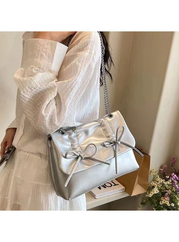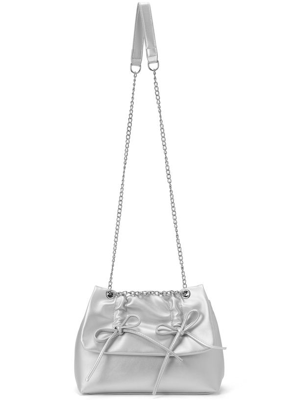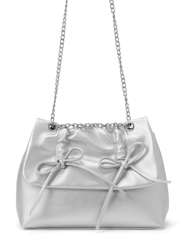 日本 GRL - 小奢華絲帶鍊條肩背包-霧銀 (F)