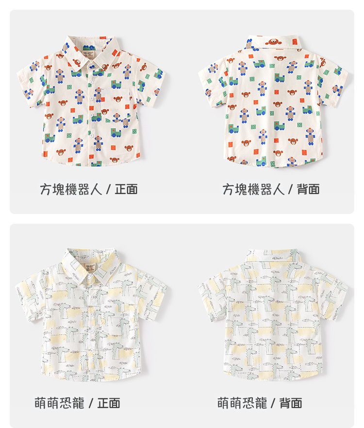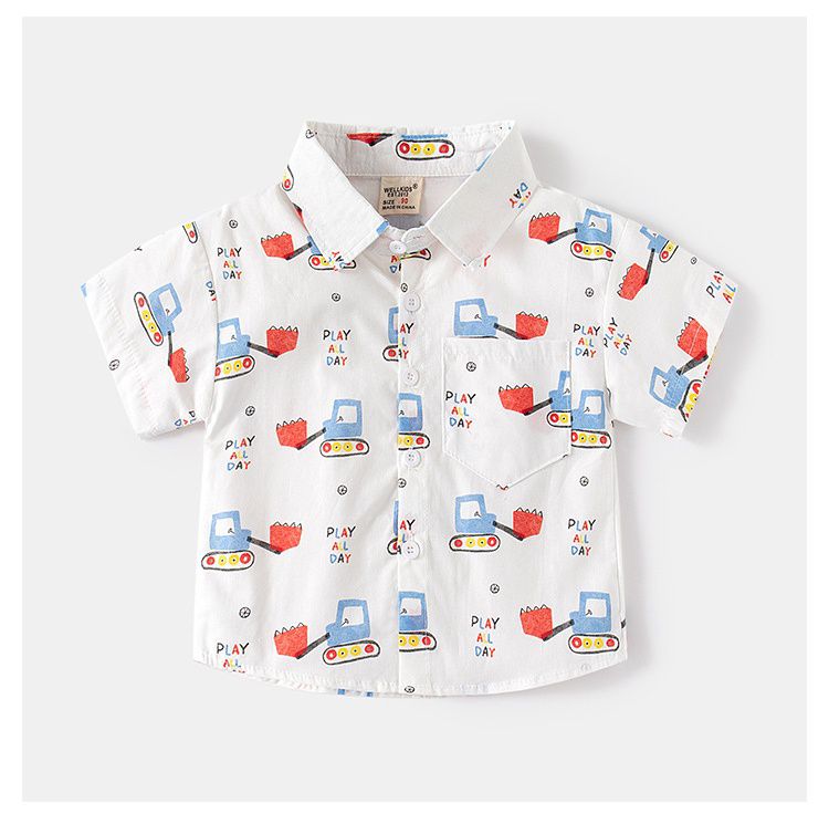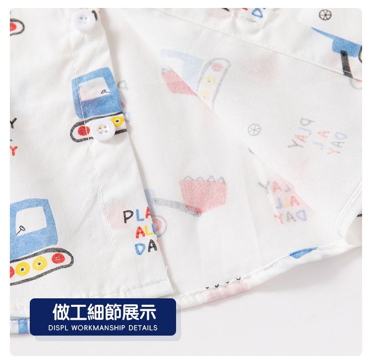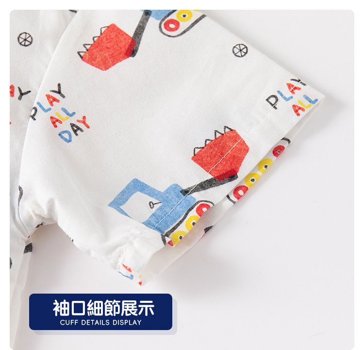 純棉休閒翻領短袖襯衫-小挖土機-米白