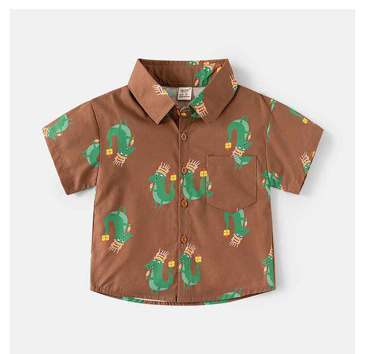 WELLKIDS - 純棉休閒翻領短袖襯衫-滿滿恐龍-藍色