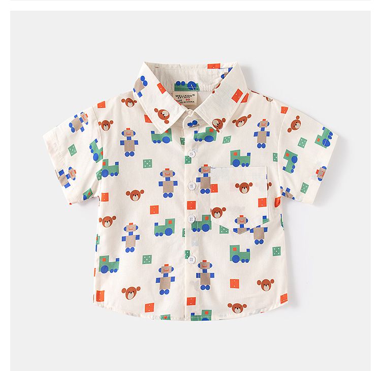 WELLKIDS - 純棉休閒翻領短袖襯衫-繽紛熊熊-白色