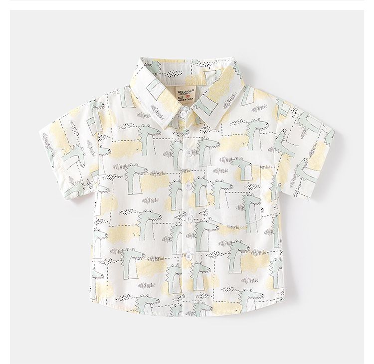 WELLKIDS - 純棉休閒翻領短袖襯衫-四格恐龍-綠色