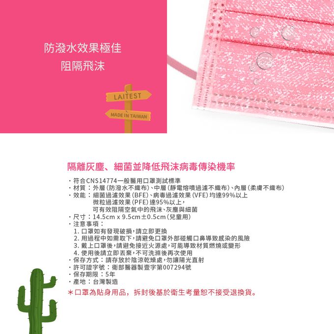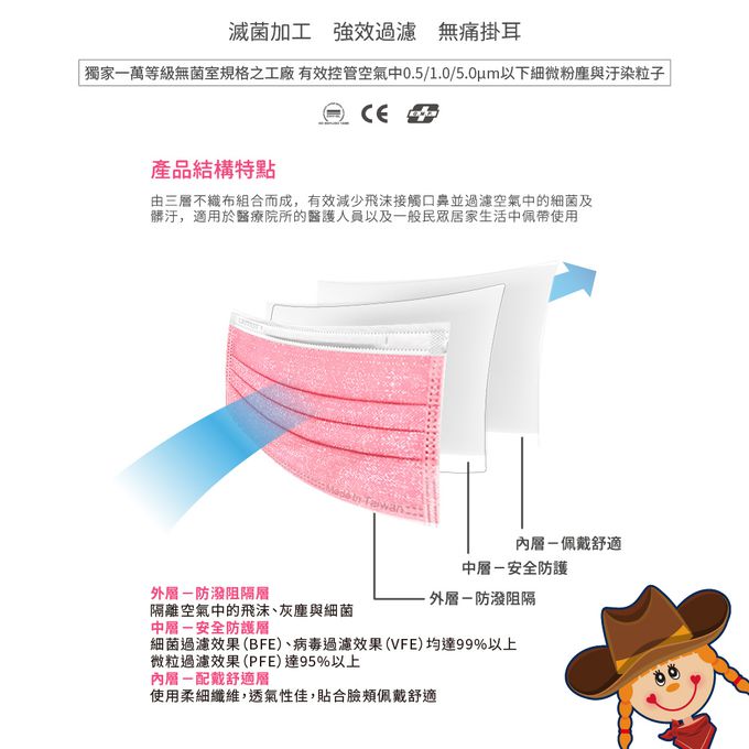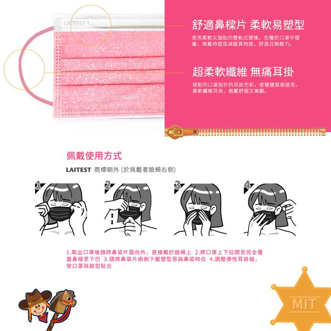 品名:醫療防護口罩/兒童 童心牛仔玫瑰粉 50入盒裝