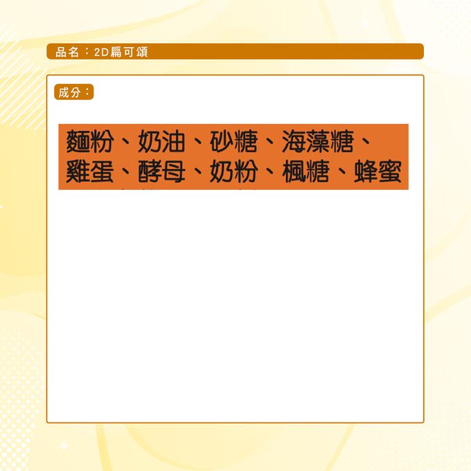 過敏原:本產品含蛋、牛奶製品、麵粉。
