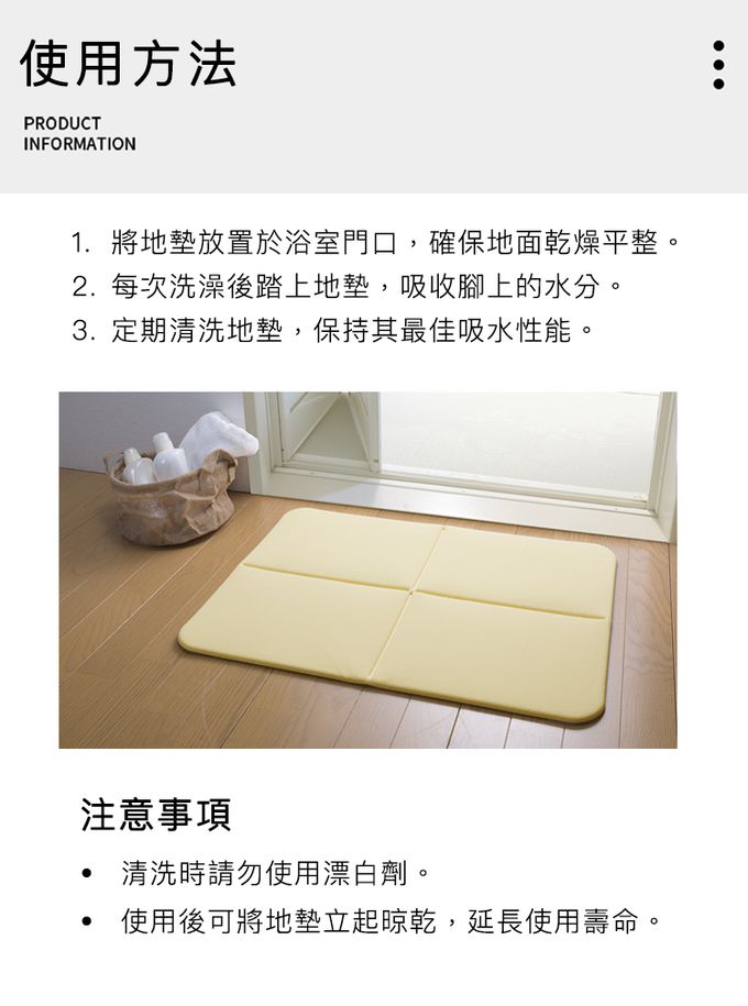 2.每次洗澡後踏上地墊,吸收腳上的水分。