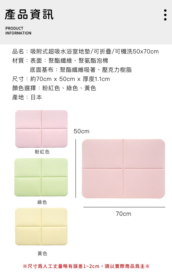 商品名稱:日本製吸附式超吸水浴室地墊/可折疊/可機洗50x70cm