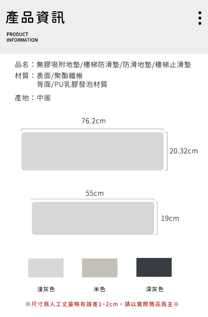 • 品名:無膠吸附地墊/樓梯防滑墊/防滑地墊/樓梯止滑墊 19*55cm