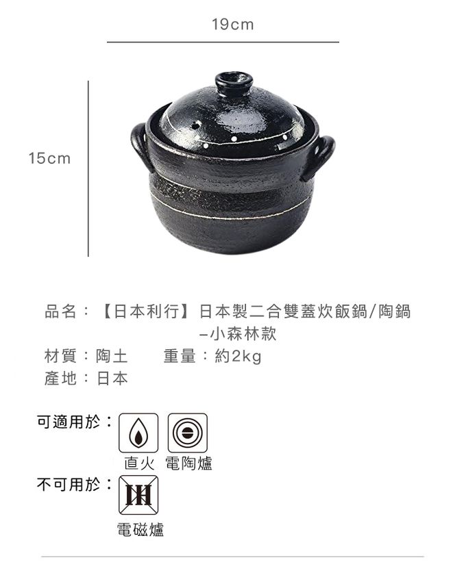 商品名稱:日本製二合雙蓋炊飯鍋/陶鍋-小森林款