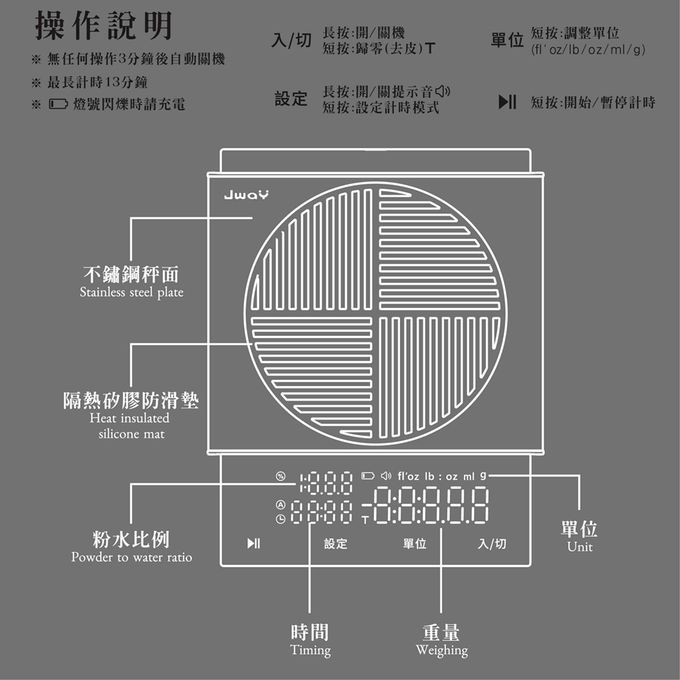 粉水比咖啡料理秤-JY-CFS401/電子秤/計時秤/烘培秤/中藥秤/茶葉秤/食物秤 (黑色)