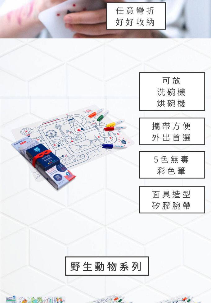 商品重(容)量:矽膠彩繪餐墊一組+5色無毒可洗式彩色筆