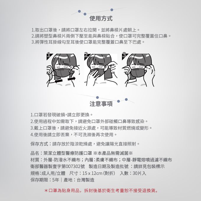 醫療器材許可證品名:萊潔立體型醫療防護口罩(未滅菌)