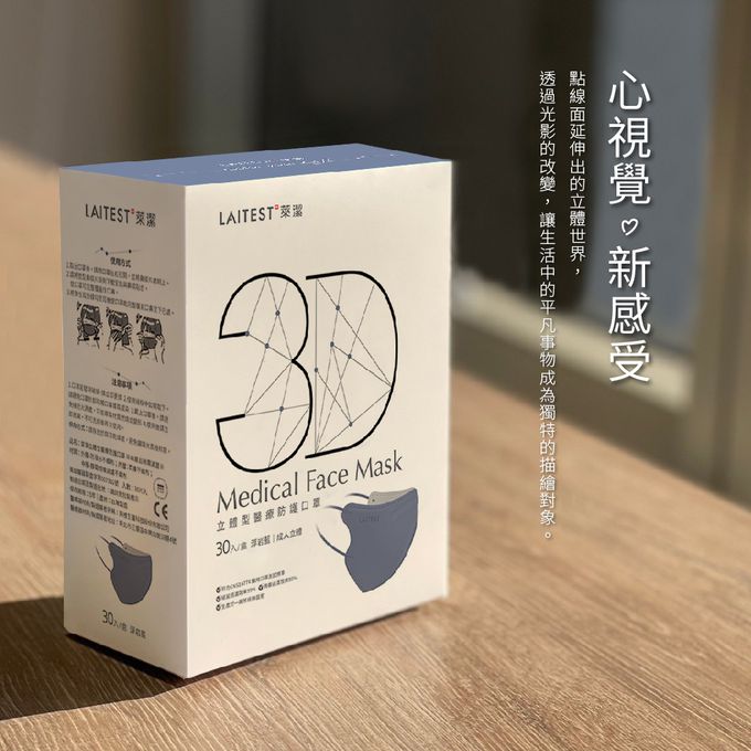 品名:3D立體型醫療防護口罩(成人用)浮岩藍 30入盒裝
