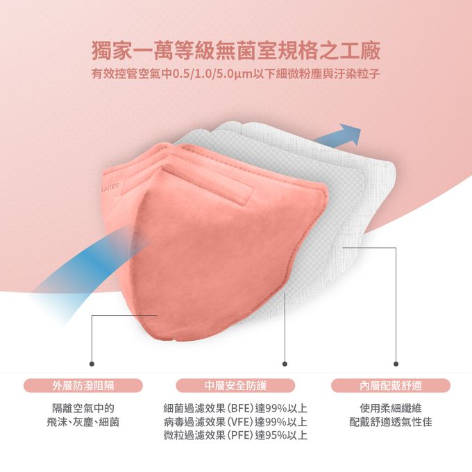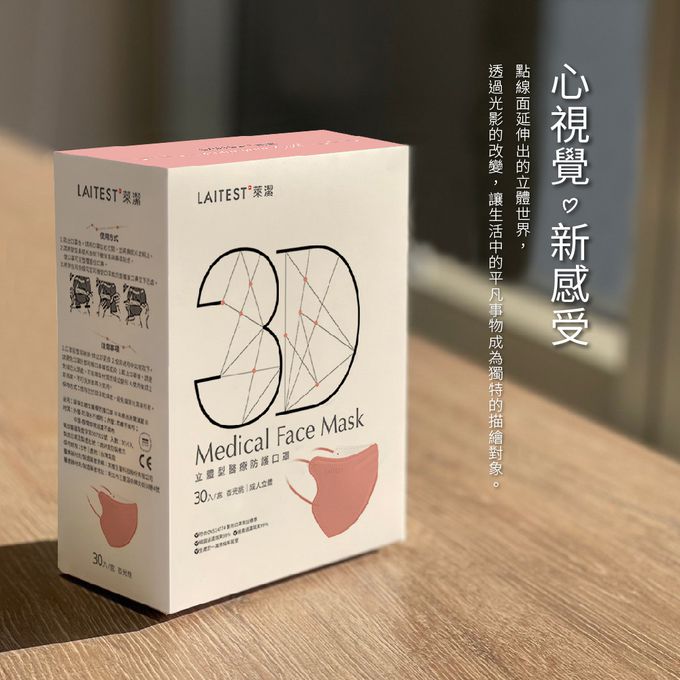 品名:3D立體型醫療防護口罩/成人 杏光桃 30入盒裝