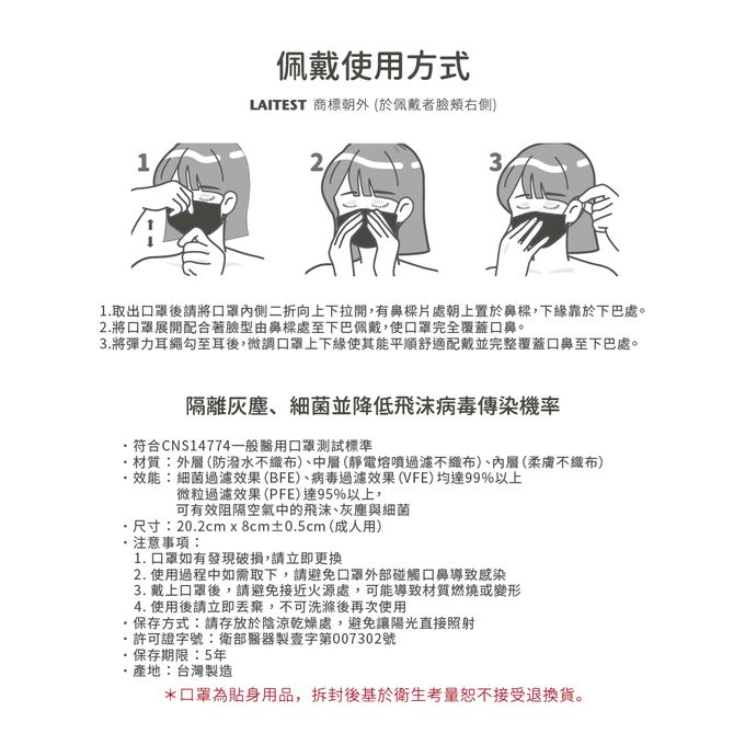 醫療器材許可證品名:萊潔立體型醫療防護口罩(未滅菌)