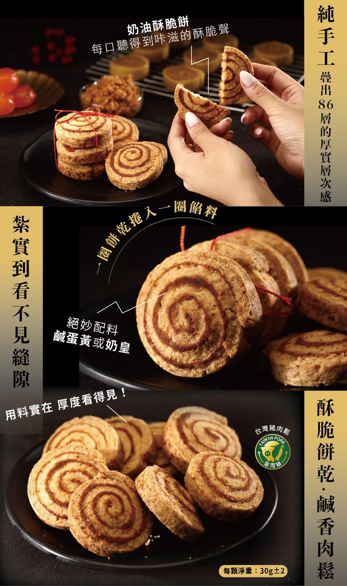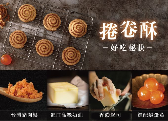 除了經典肉鬆餅禮盒,還獨創捲卷酥