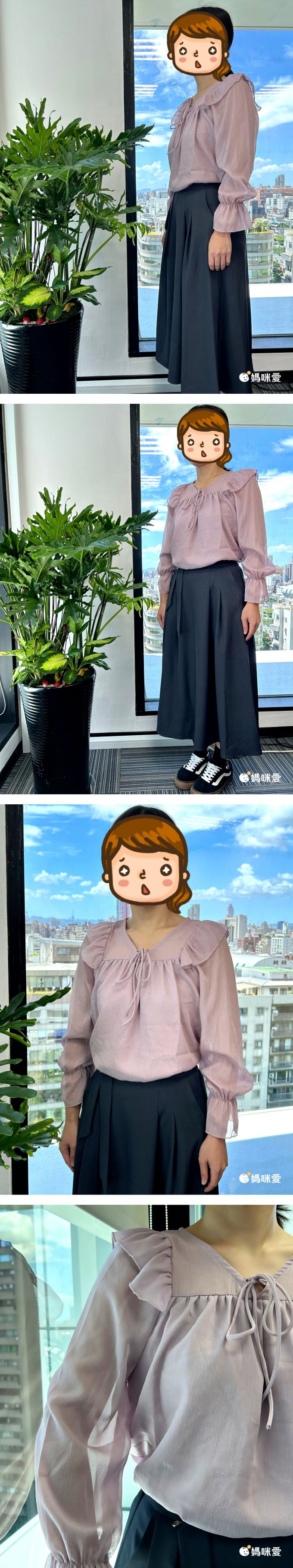 840791 光澤感V領荷葉邊長袖上衣-浪漫紫 (F)