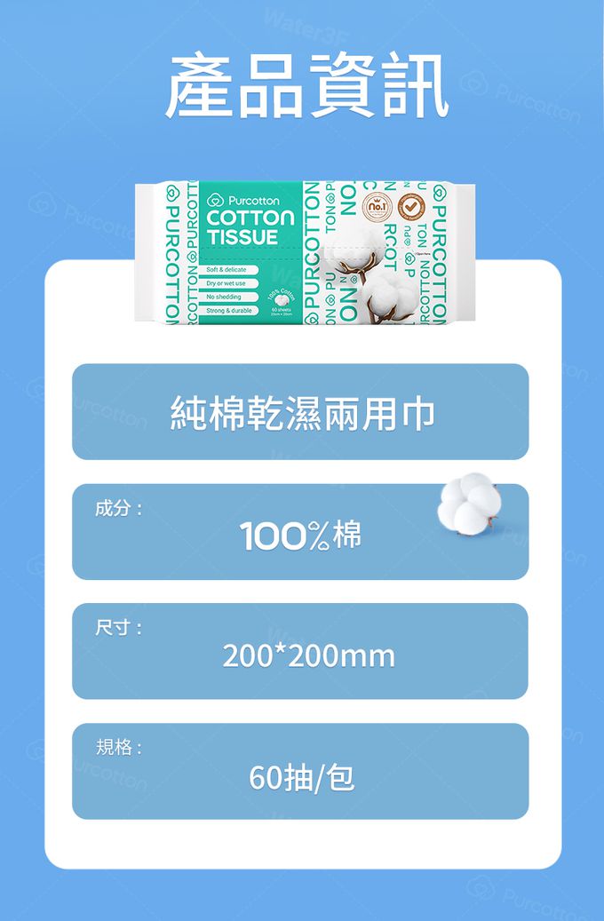 • 品名:100%純棉乾濕兩用巾 60片 (20*20公分)