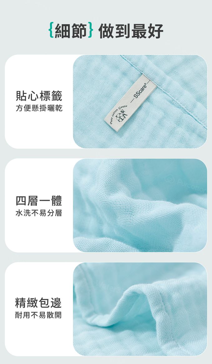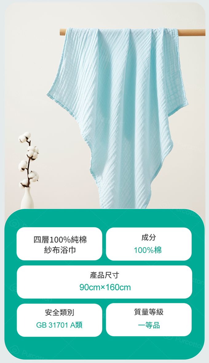 • 品名:四層100%純棉紗布浴巾 (90*160 公分) 1件入