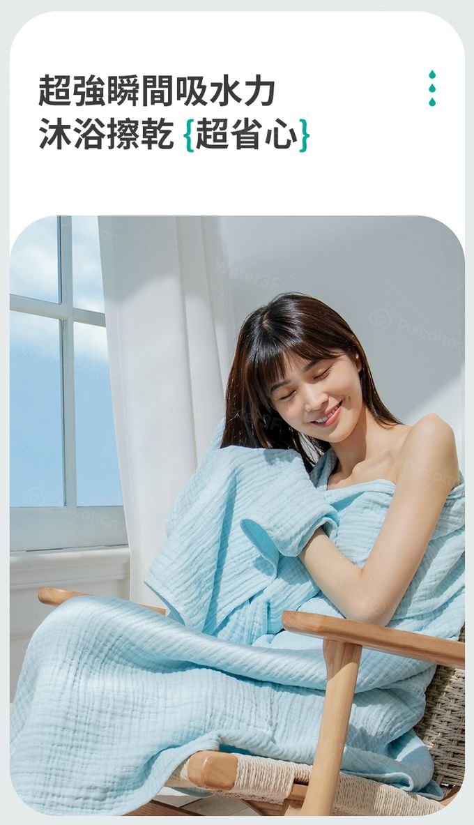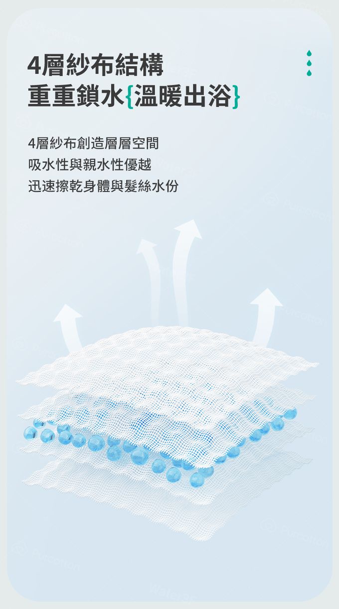 • 優異瞬間吸水性,快速擦乾身體與髮絲水份