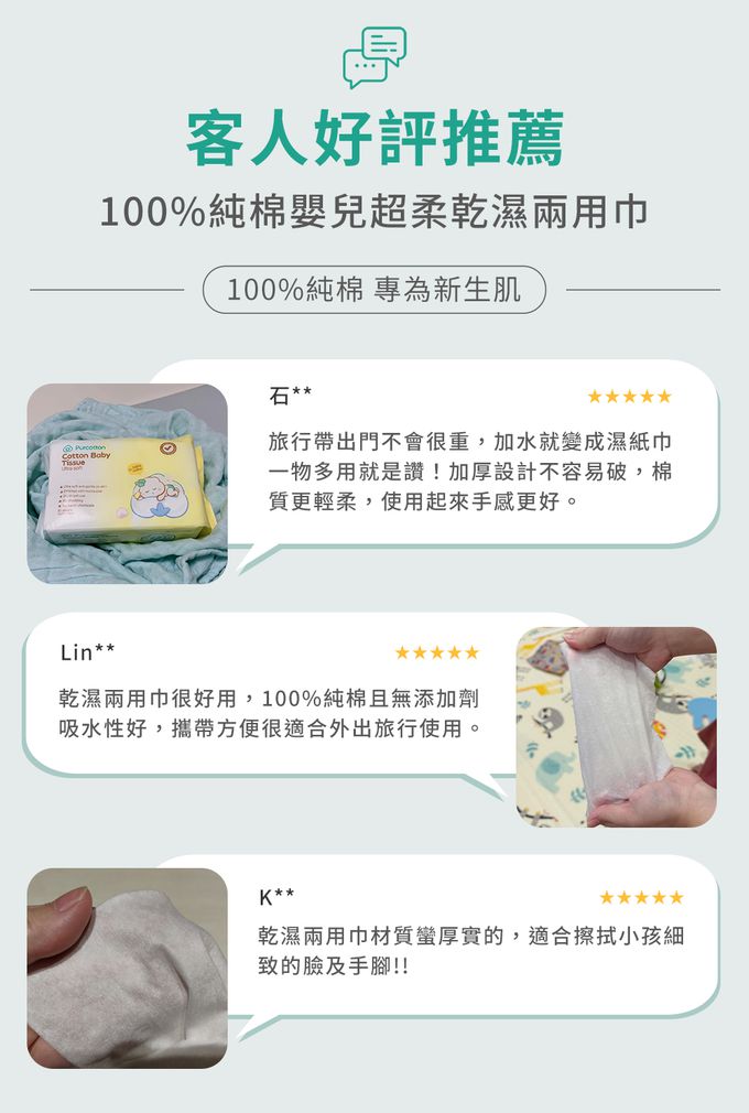 • 品名:100%純棉嬰兒超柔乾濕兩用巾 80片加厚 (15*20公分) [限購體驗價]