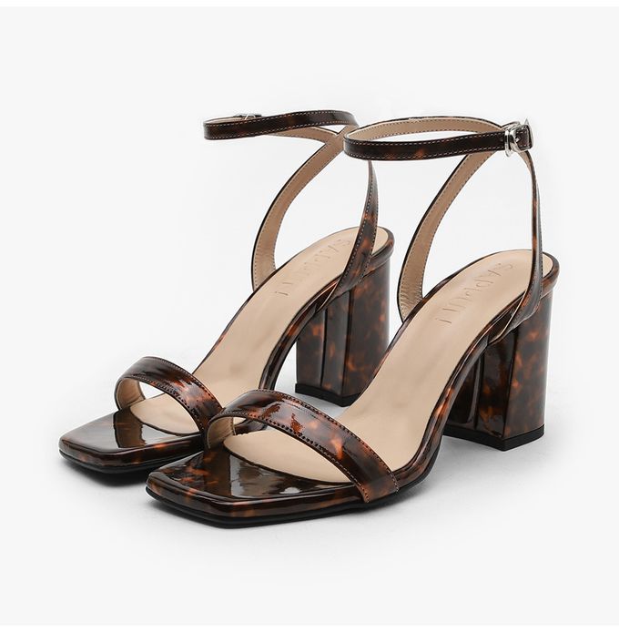 韓國 SAPPUN - 韓製雙細帶漆皮粗跟涼鞋-琥珀