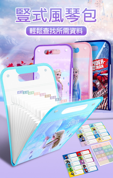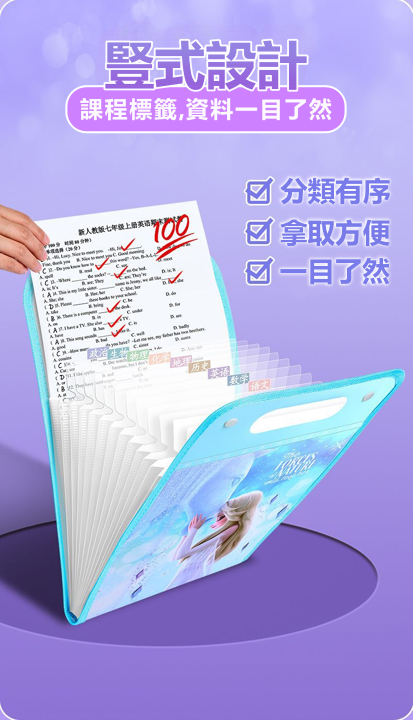 A4文件/考卷/獎狀收納資料夾/風琴夾-卡通人物艾莎-冰雪藍 (33.5x26.5cm)