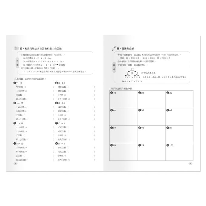 數學能力的養成,需要不斷的練習和付出.本書學習單元包含小數;因數;倍數;分 數比和比值;百分率及未知數的計算,每個單元都有例題示範及說明,讓孩子們容 易理解計算技巧,書後編有總複習,針對全書內容做綜合性的練習;幫助孩子們藉 由反覆的練習及循序漸進的學習方式,提升計算能力,成為數學高手.