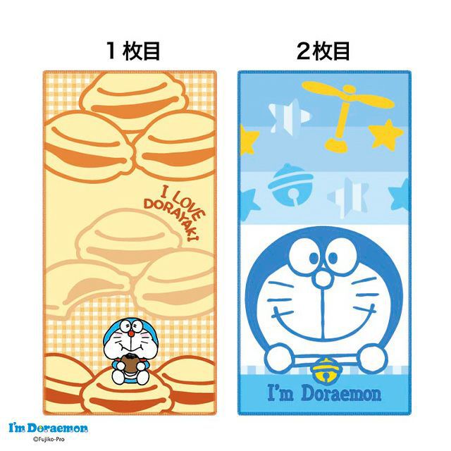 日本 丸真 - 純棉上學隨身手帕(2入組)-卡通人物哆啦A夢-藍&黃 (10×20cm)