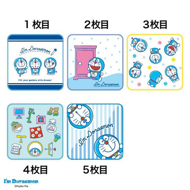 純棉上學擦手巾/手帕(5入組)-哆啦A夢