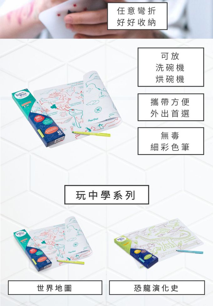 矽膠彩繪餐墊-玩中學系列-世界地圖/農場動物/恐龍演化史/字母練習-40 x 30 cm