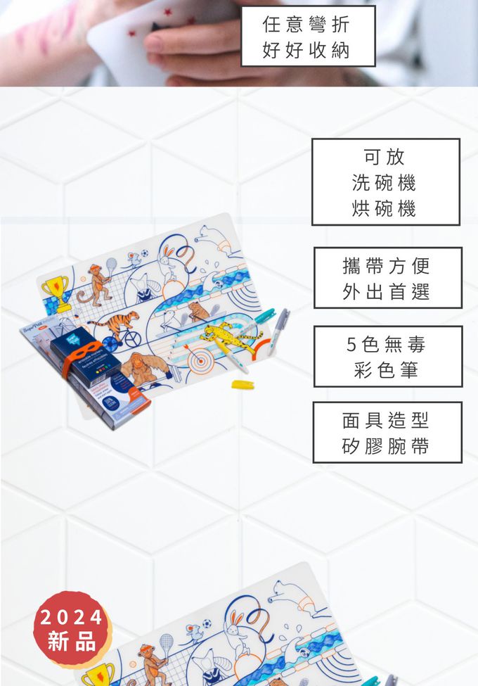 商品重(容)量:矽膠彩繪餐墊一組+5色無毒可洗式彩色筆