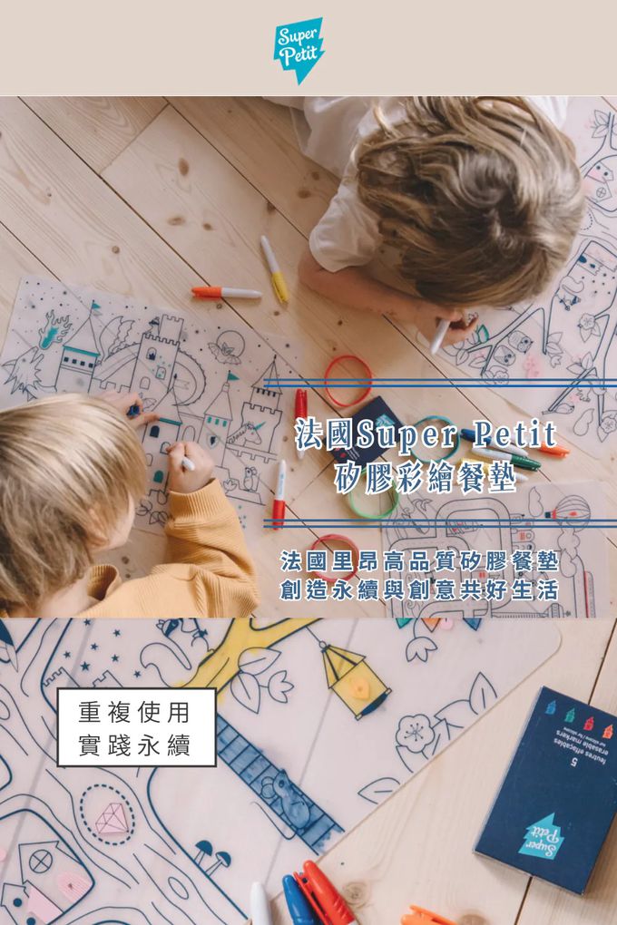 商品重(容)量:・法國 Super Petit 矽膠彩繪餐墊 - 巴黎 x 1入 ・法國 Super Petit 矽膠彩繪餐墊 - 動物運動會 x 1入 ・法國 Super Petit 牛仔布收納袋三選一 ・法國 Super Petit 可洗式無毒彩色筆(10色)x 1入 ・法國 Super Petit 品牌精緻紙盒 x 1入