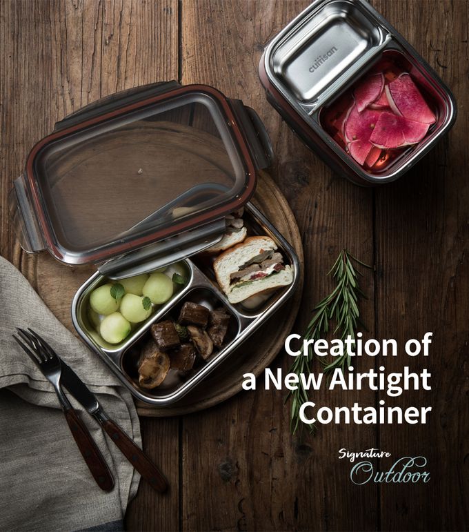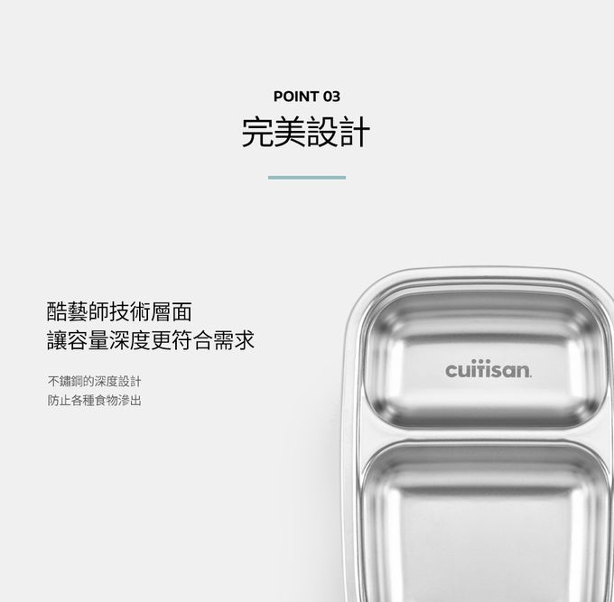 韓國 CUITISAN 酷藝師 - 304可微波不鏽鋼方形三隔餐盤-征旅系列-560ml/-40°C-400°C