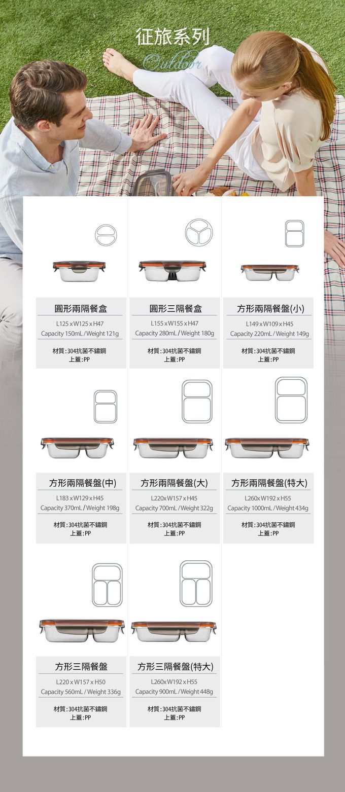 304可微波不鏽鋼方形三隔餐盤-征旅系列-560ml/-40°C-400°C
