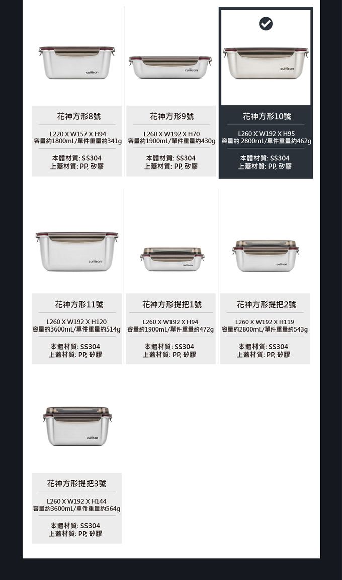 304可微波不鏽鋼保鮮盒-花神系列-方形10號-2800ml/-40°C-400°C