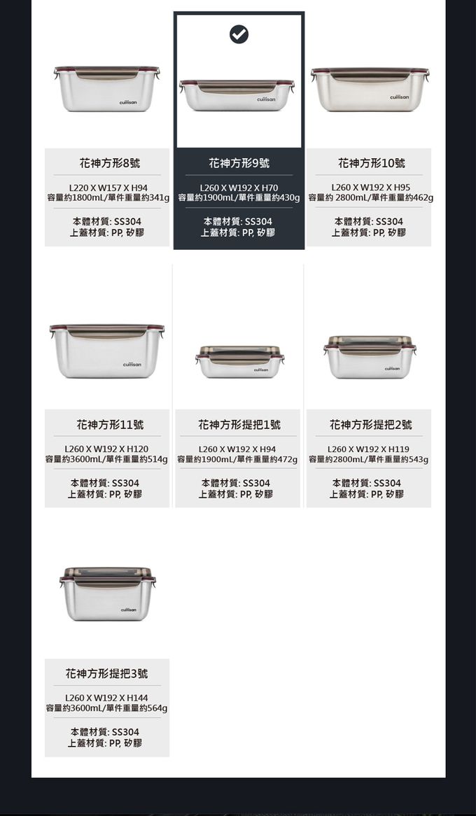 304可微波不鏽鋼保鮮盒-花神系列-方形9號-1900ml/-40°C-400°C