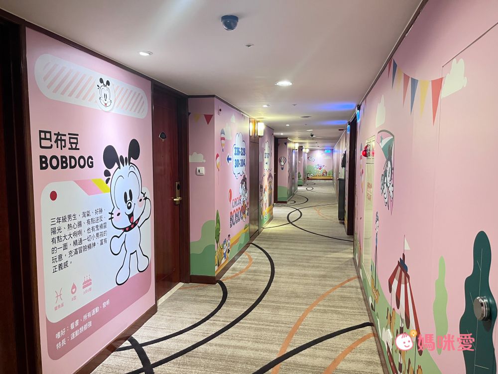 出了梯廳要進入巴布豆主題樓層時,會有一區可以給旅客們打卡拍照的地方~【台中長榮桂冠酒店】也很貼心的準備了小小的椅凳,可以全家一起打卡拍照變身聚光燈下的卡通主角!