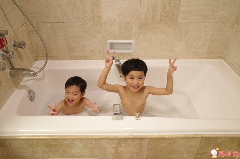 吃飽喝足完,再來就是小朋友們最喜愛的無敵泡澡時光啦~兩個寶貝興奮地拿著夜市剛剛獲得的全新戰利品小玩具下水,看他們開心又滿足的模樣,值得!