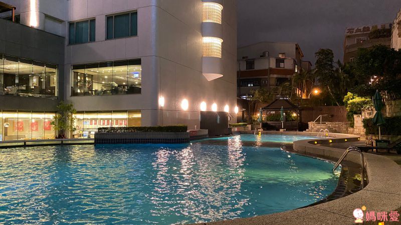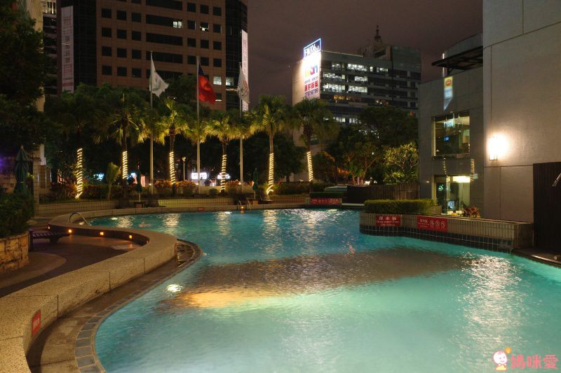 從 B1 走道最內側走樓梯到一樓,就是「戶外泳池(營業時間 07:30~12:00 & 14:00~18:00 & 19:00~21:00)」,分為一大池還有兒童戲水池(夏天會有黃色小鴨可以一起玩水喔);佔地雖然不算大,但已經蠻夠玩的了,像是小型泳池度假勝地的感覺
