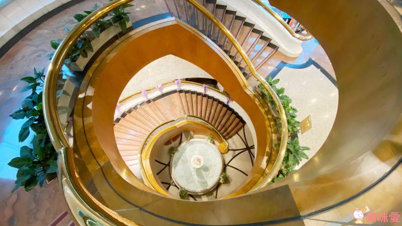 從 B2 延伸到 3F 的迴旋樓梯,還有噴水池,都很美很好拍呢!這裡也有大廳酒吧、迎賓會客區,晚上的時候可以自費享用調酒等飲品,小憩一下享受難得的獨處時光