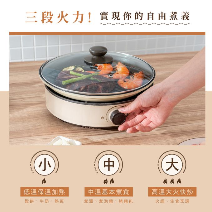 無段式溫度調節旋鈕(小/中/大),輕鬆掌握