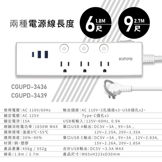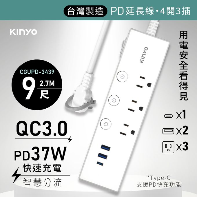 四開三插PD+QC延長線 CGUPD-343-6呎