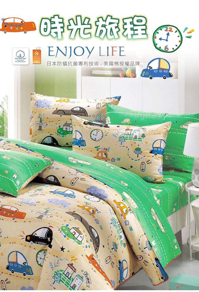 單人薄被套5x7 防蹣抗菌100%美國棉-時光旅程-黃