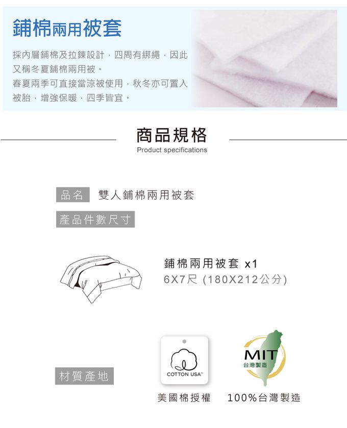 尺寸:兩用被套 6x7尺 (180x212公分)