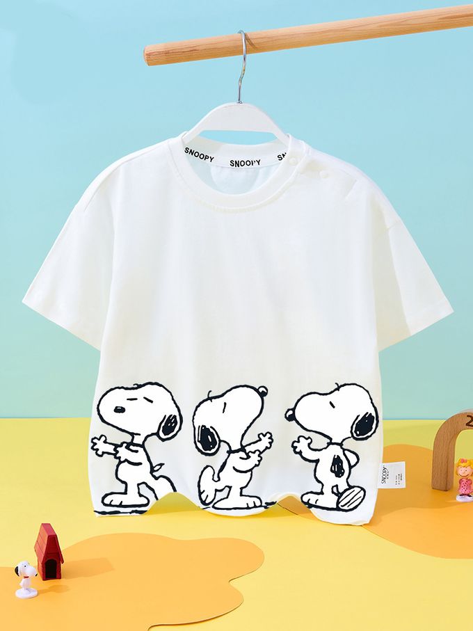 純棉圓領短袖上衣/t恤-卡通SNOOPY-白色