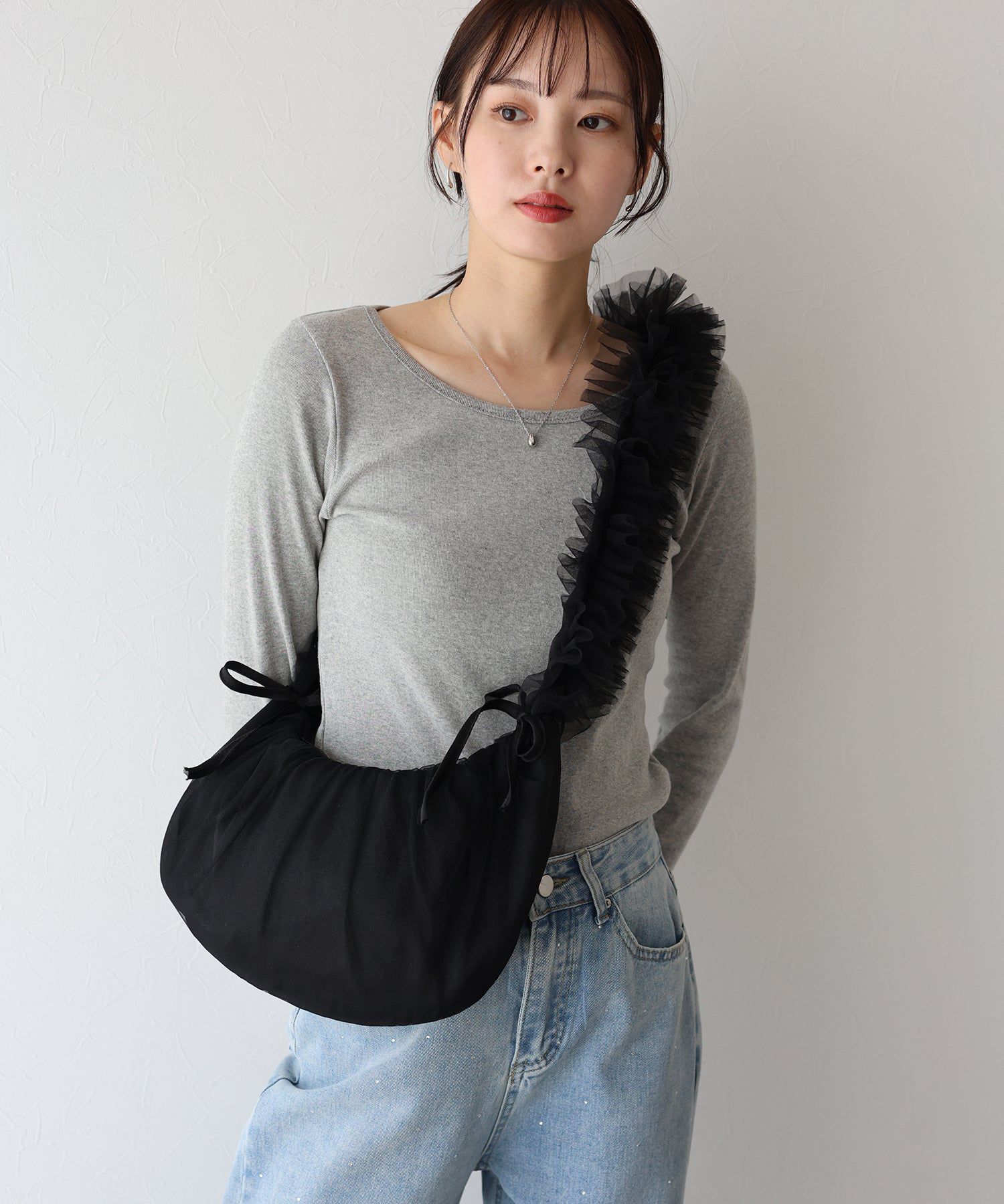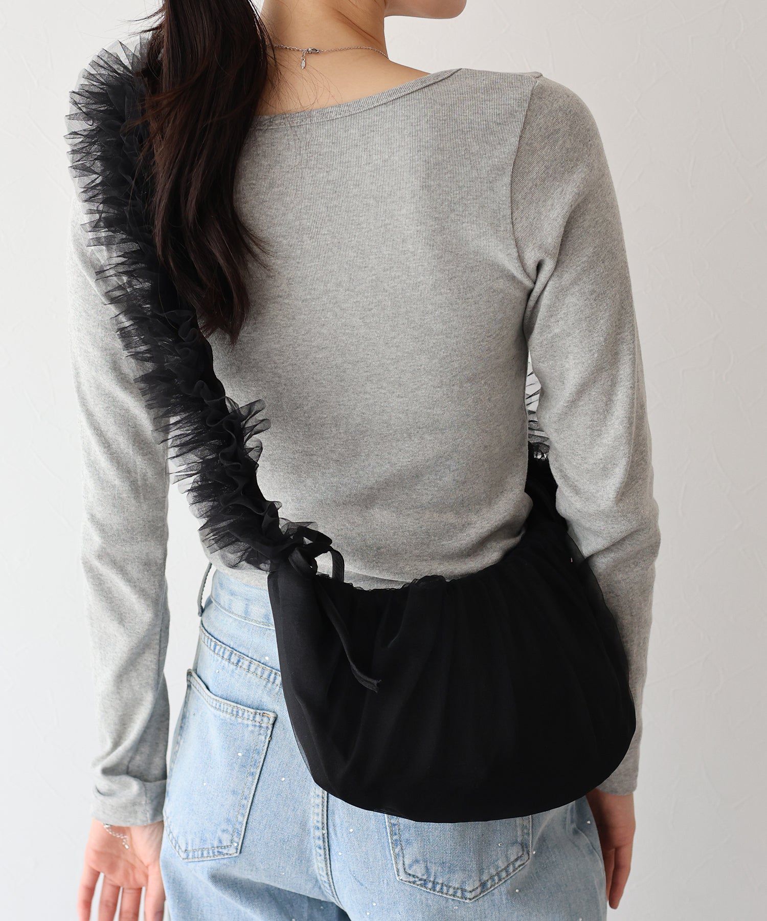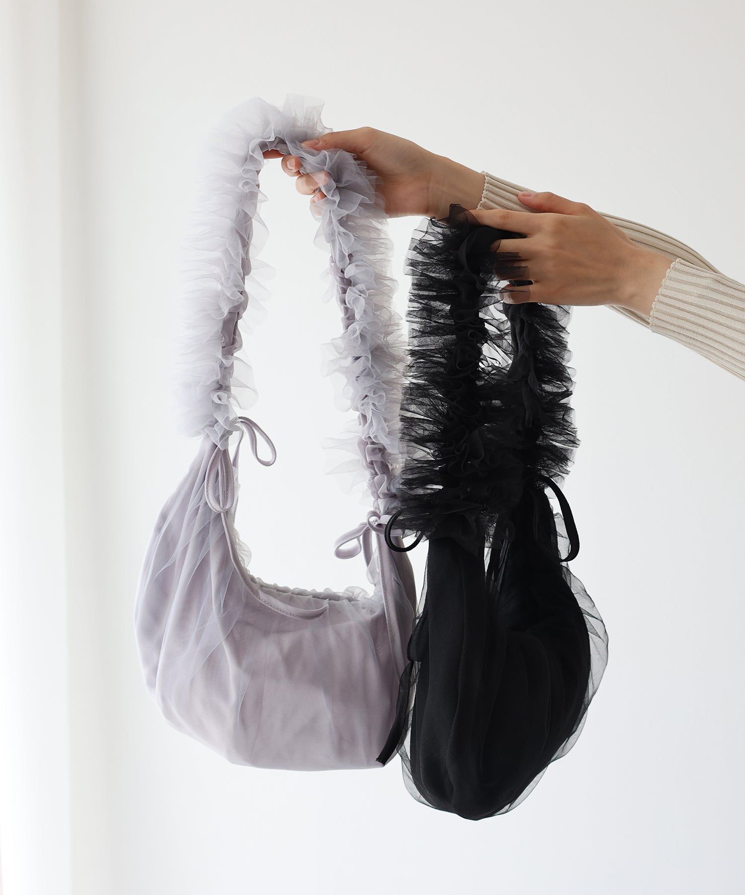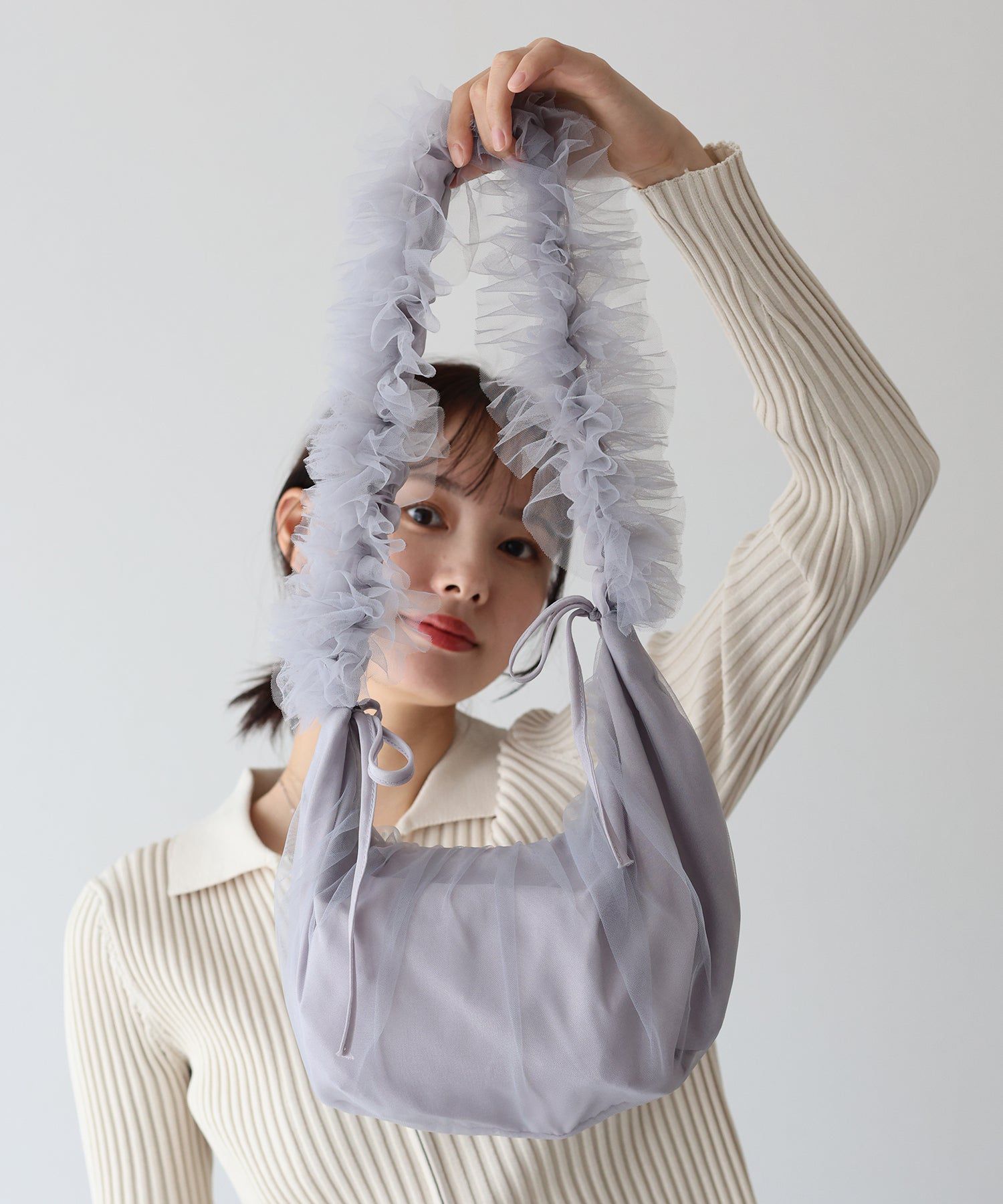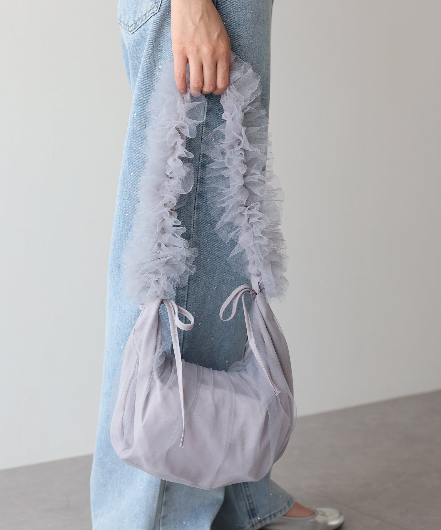 • 品名:浪漫澎澎薄紗肩帶側背包