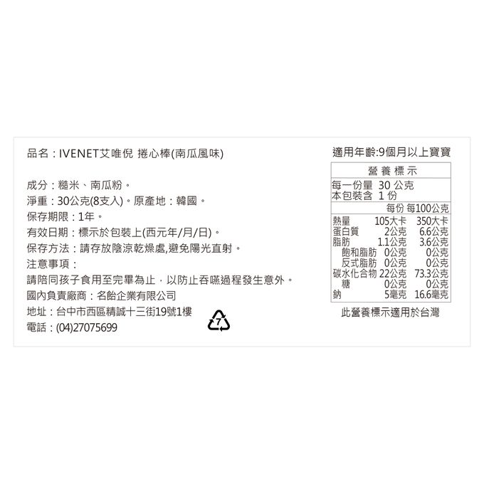 品名:艾唯倪捲心棒_綜合3包組-(菠菜30g+南瓜30g+紫薯30g各1包)
