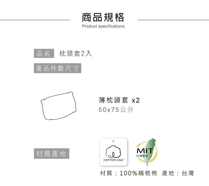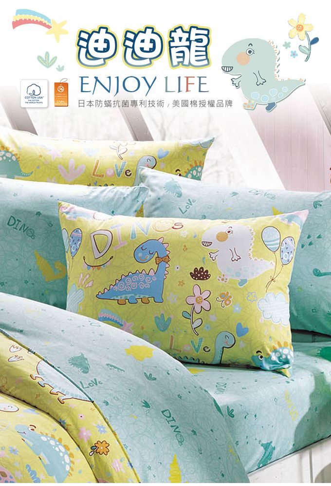枕套2入 防蹣抗菌100%美國棉-迪迪龍-黃