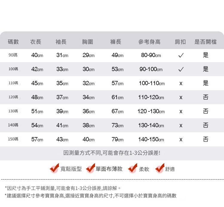 90cm、100cm、110cm(無肩釦)、120cm(無肩釦)、130cm(無肩釦)、140cm(無肩釦)、150cm(無肩釦)、160cm(無肩釦)